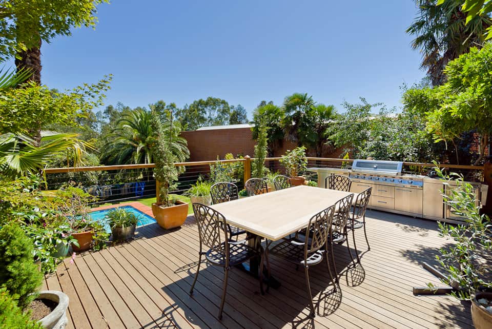DECK- Overlooking the pool with Outdoor table seats 10.Gourmet gas BBQ.